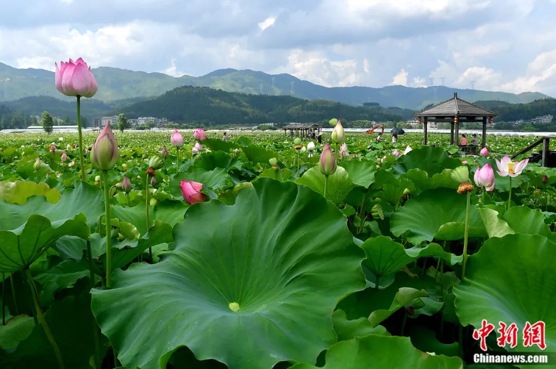 福建省周寧縣浦源村鯉魚溪公園內(nèi)荷花盛開。張斌 攝