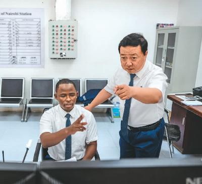 毛鑫是非洲之星鐵路運(yùn)營(yíng)公司運(yùn)輸部?jī)?nèi)羅畢車站運(yùn)轉(zhuǎn)主任,他與徒弟彼得·恩堅(jiān)加一起制定調(diào)度計(jì)劃、調(diào)控列車運(yùn)轉(zhuǎn)?!拔覀儫o保留地把國(guó)內(nèi)的技術(shù)標(biāo)準(zhǔn)帶到肯尼亞,學(xué)員已達(dá)到國(guó)內(nèi)車站同等作業(yè)標(biāo)準(zhǔn)?!泵握f,幫助肯尼亞建設(shè)第一條現(xiàn)代化鐵路,是他人生中的亮點(diǎn)。彼得表示,自己從師父身上學(xué)到了許多專業(yè)技術(shù),未來他將把知識(shí)傳授給更多人。