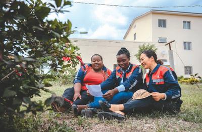 中國(guó)師父陳玲(右)是非洲之星鐵路運(yùn)營(yíng)公司工電部電子設(shè)備檢修工區(qū)工長(zhǎng)。在肯尼亞工作4年來,她見證了女學(xué)員們電務(wù)技術(shù)的成長(zhǎng)。“現(xiàn)在她們都能獨(dú)當(dāng)一面?!标惲嵴f。朱迪思(左)是陳玲的學(xué)員之一,她從師父那里獲得的不僅是技術(shù),工作間隙對(duì)飲食、文化等多維度的交流同樣讓她受益匪淺?!拔覀冎g是師徒,更是姐妹?!敝斓纤颊f。圖為陳玲在休息時(shí)教學(xué)員唱中文歌曲。