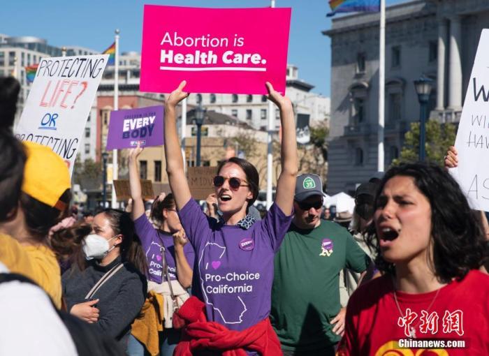 資料圖:當(dāng)?shù)貢r間2022年6月24日,美國舊金山民眾聚集在市政廳前,抗議美聯(lián)邦最高法院推翻“羅訴韋德案”。中新社記者 劉關(guān)關(guān) 攝