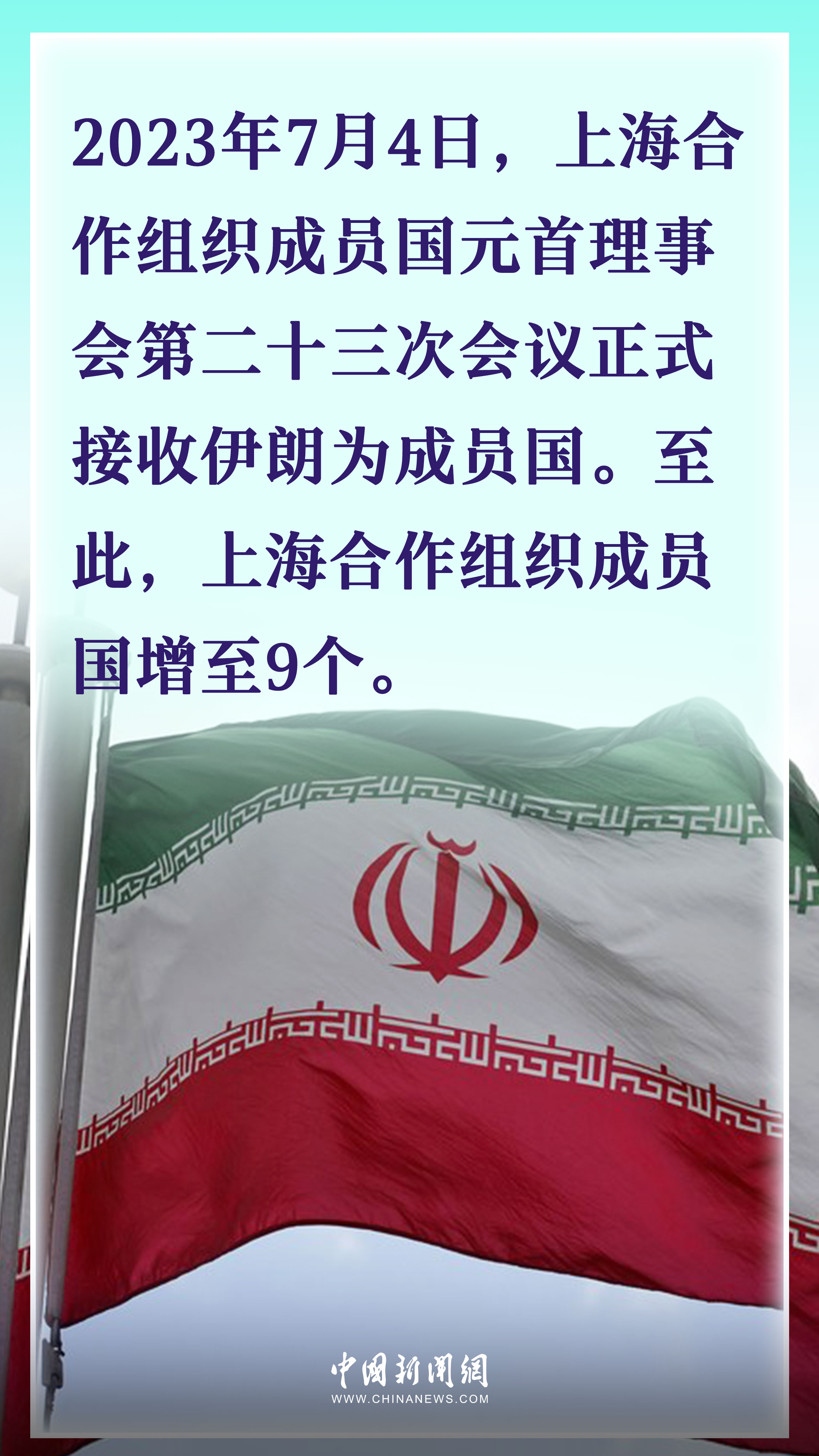 上合組織成立于2001年,創(chuàng)始成員國為中國、俄羅斯、哈薩克斯坦、吉爾吉斯斯坦、塔吉克斯坦和烏茲別克斯坦6國。隨著時間推移,上合“朋友圈”不斷擴容。2017年,上合組織給予印度和巴基斯坦成員國地位。2023年7月4日,上合組織再次注入“新鮮血液”,伊朗被正式接受為第9個成員國。