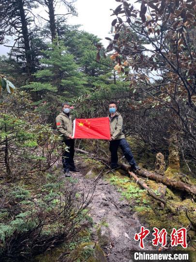 圖為王彥凱(右)和戰(zhàn)友在一線(xiàn)山口宣誓主權(quán)?!±歼吘撑沙鏊﹫D