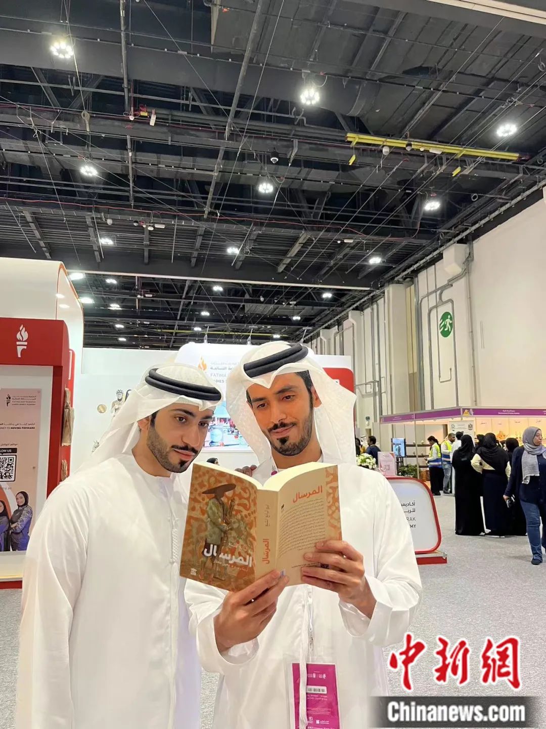 在阿布扎比國際書展上,阿拉伯文學(xué)愛好者閱讀中國文學(xué)作品《捎話》。譯林出版社 供圖