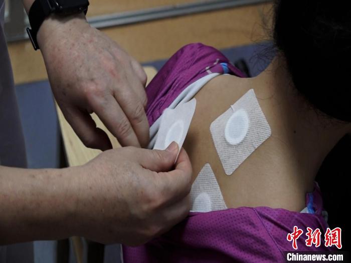 圖為醫(yī)生正在為民眾貼“三伏貼”。 唐蔚晴 攝