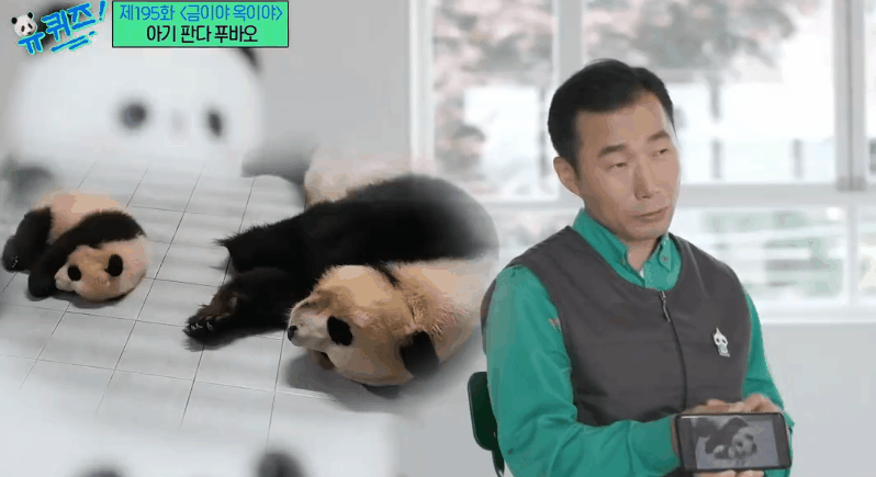 在韓國(guó)綜藝節(jié)目中,飼養(yǎng)員姜爺爺展示“福寶”照片。(來(lái)源:韓國(guó)tvN電視臺(tái))