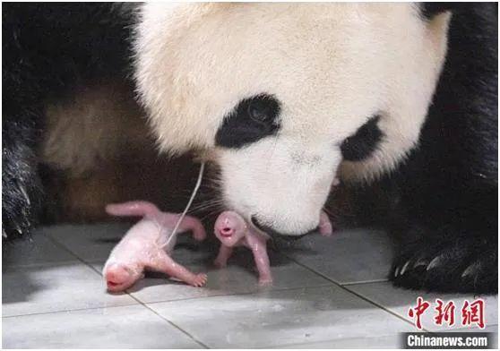 當(dāng)?shù)貢r(shí)間2023年7月7日,大熊貓“愛(ài)寶”在韓國(guó)三星愛(ài)寶樂(lè)園產(chǎn)下雙胞胎幼崽。圖為“愛(ài)寶”與幼崽?!?韓國(guó)三星愛(ài)寶樂(lè)園供圖)
