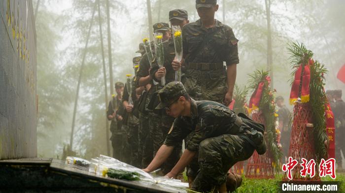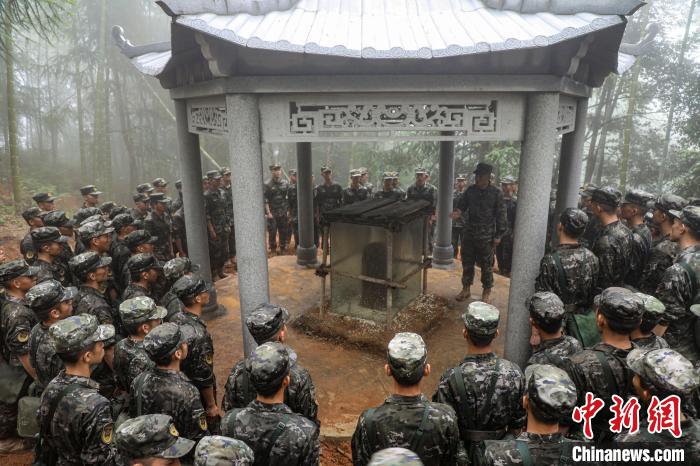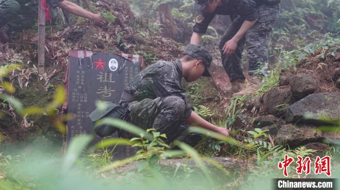 官兵徒步行軍至武夷山市洋莊鄉(xiāng)小漿村張山頭無名紅軍烈士墓群,開展“追尋紅色印記、賡續(xù)紅色血脈”參觀見學活動。中新社記者 張麗君 攝