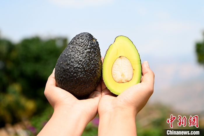 圖為4月27日,云南八方農(nóng)業(yè)科技發(fā)展有限公司工作人員展示成熟的牛油果。 中新社記者 李嘉嫻 攝