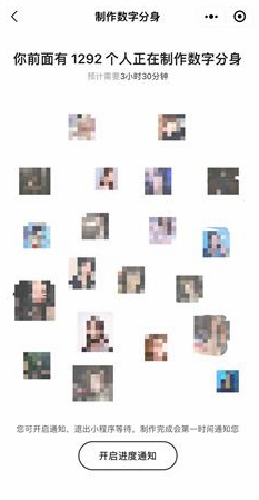 在提供素材后,往往要等待幾個(gè)小時(shí)才能完成“數(shù)字分身”制作。 截圖自妙鴨相機(jī)小程序。
