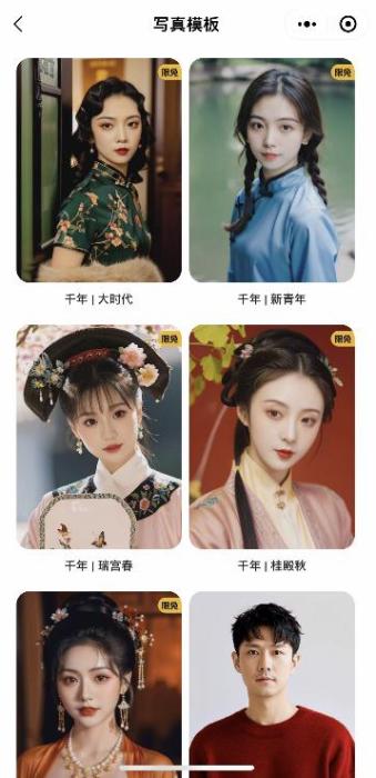 妙鴨相機(jī)提供的寫真模板。 截圖自妙鴨相機(jī)小程序。
