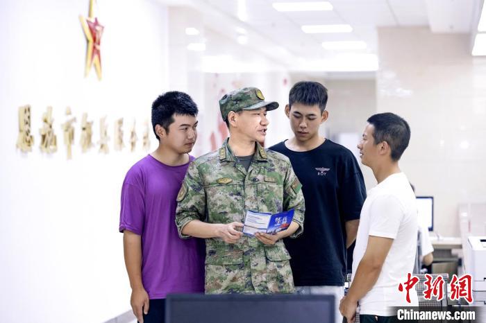 陳剛果在恩施市征兵服務站與應征青年交談。粟毅 攝