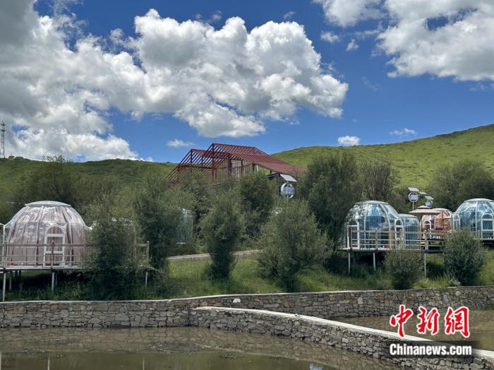 在園區(qū)內,除了大面積的草場,還能看見一些臨水而建、顏色各異的圓形房間。王春貴介紹稱,那是供游客休閑的星空房。目前,紅原牦?,F代農業(yè)園區(qū)正朝著牧旅融合的道路發(fā)展,咖啡屋、星空房等休閑設施以及牧旅融合體驗區(qū)已初步建設完成。“全部建成以后,游客還能在園區(qū)內體驗牦牛喂養(yǎng)?!蓖醮嘿F說。