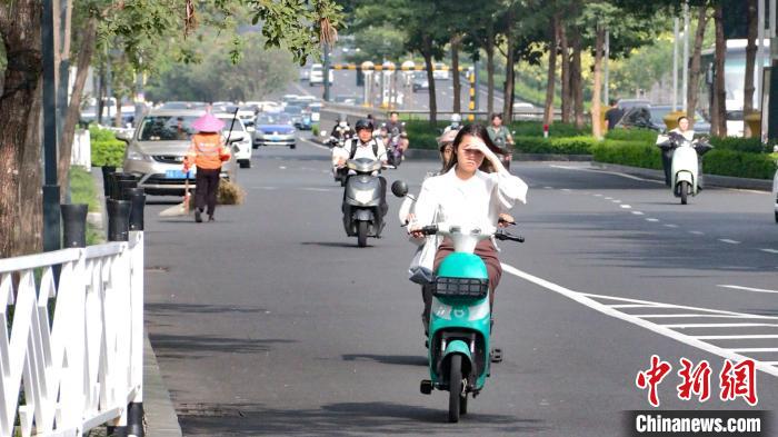 圖為一位女士騎電動(dòng)車時(shí)用手遮擋陽光。王偉臣 攝