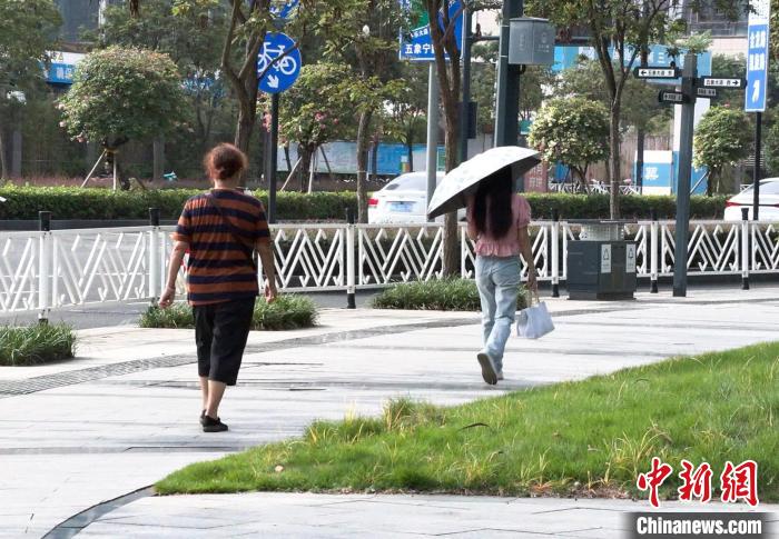 圖為陽光下行走的市民。王偉臣 攝