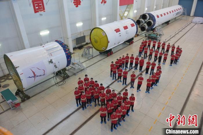長(zhǎng)征四號(hào)丙運(yùn)載火箭研制歷程,研制團(tuán)隊(duì)站成數(shù)字100的隊(duì)形。(中國(guó)航天科技集團(tuán)有限公司八院供圖)