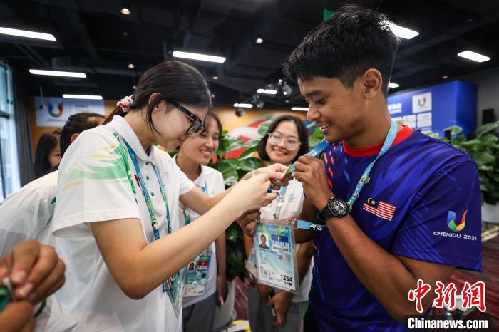 “這個活動推動大家和來自不同文化背景的人溝通,這也是我們來參加成都大運會的重要意義之一?!盬iIliam Joseph說,自己從到達成都大運村的第一天就開始交換徽章,每一枚徽章背后都是一段新的友誼?!拔业男屡笥讯嗟綌?shù)不過來,包括運動員、教練和志愿者,以后應(yīng)該也會保持聯(lián)系?!?/p>