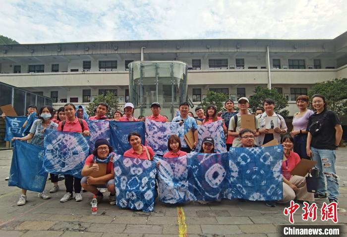 臺灣青年參加臺胞青年千人夏令營貴州分營,展示親手制作的非遺印染技藝作品。周燕玲 攝