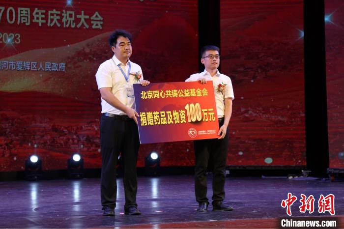 此次健康公益活動由北京同心共鑄公益基金會主辦?;顒诱陳圯x區(qū)新生鄂倫春族鄉(xiāng)鄂倫春族同胞下山定居70周年,受愛輝區(qū)委區(qū)政府邀請,北京同心共鑄公益基金會攜醫(yī)務(wù)志愿者、社會愛心人士參加了當(dāng)?shù)嘏e辦的相關(guān)慶祝活動。其間,基金會向愛輝區(qū)捐贈價值100萬元人民幣的藥品及物資,基金會秘書長殷延志獲評為助力愛輝區(qū)鄂倫春族發(fā)展“貢獻(xiàn)杰出人物”。