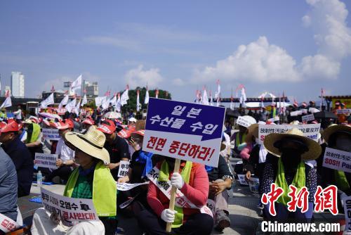 此前,韓國全國漁民會總聯(lián)盟在全羅南道、仁川市等地舉行多次集會,抗議日本核污染水排海。