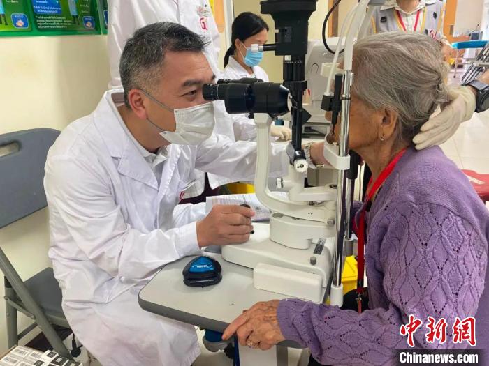 8月8日,鄒文進(jìn)給患者做詳細(xì)檢查。“消除白內(nèi)障致盲項目”廣西醫(yī)療隊供圖