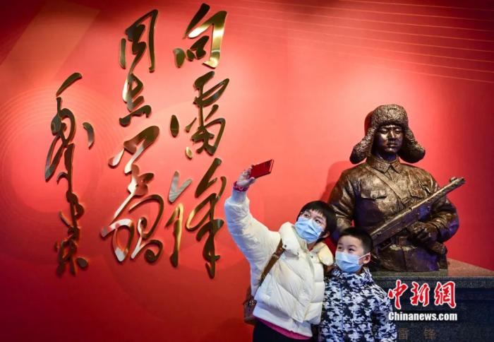 2月24日,遼寧撫順,民眾參觀雷鋒紀念館展陳及紀念毛澤東等老一輩革命家為雷鋒同志題詞六十周年專題展覽。中新社記者 于海洋 攝
