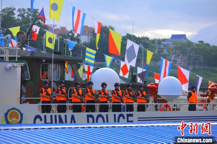 8月22日9時,第132次中老緬泰湄公河聯(lián)合巡邏執(zhí)法行動正式啟動。圖為聯(lián)合巡邏執(zhí)法編隊從中國西雙版納景哈警務碼頭啟航?!?云南省公安廳 供圖)