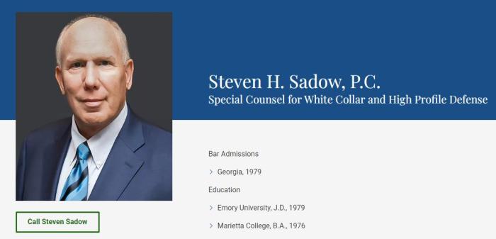 據(jù)報(bào)道,曾在佐治亞州為特朗普辯護(hù)的芬德林,將被一名來自亞特蘭大的律師薩多取代,他的網(wǎng)站簡(jiǎn)介稱他是“為白領(lǐng)和知名人士辯護(hù)的特別律師”。