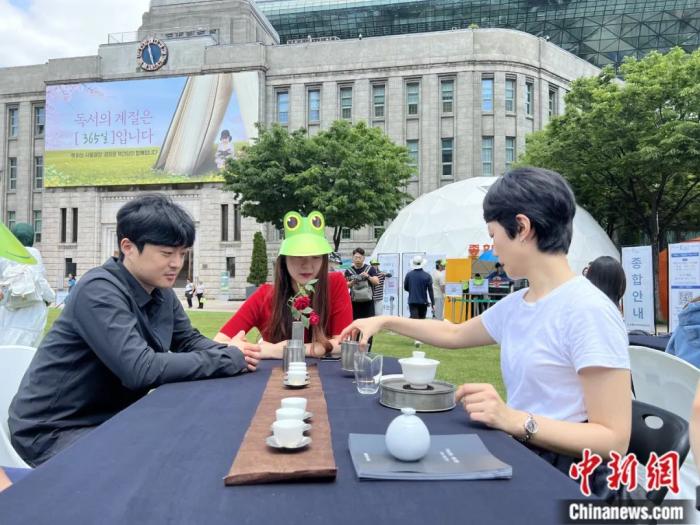 茶和天下活動在首爾市市廳廣場舉行飲茶體驗。劉旭 攝