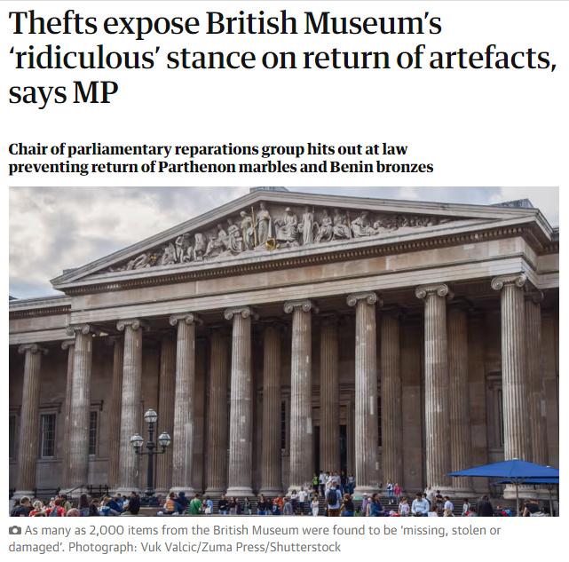 中新網(wǎng)8月28日電 據(jù)英國《衛(wèi)報》當(dāng)?shù)貢r間27日報道,對于近期大英博物館館藏被盜事件,一名英國議員表示,該事件暴露了大英博物館以安全為由,拒絕將有爭議文物歸還原籍國的借口“荒謬”且“具有侮辱性”。