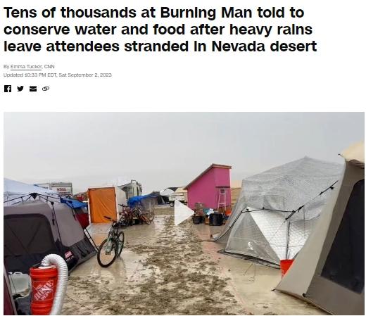 中新網(wǎng)9月3日電 據(jù)美國有線電視新聞網(wǎng)(CNN)報(bào)道,當(dāng)?shù)貢r(shí)間2日,美國內(nèi)華達(dá)州黑巖沙漠突降暴雨,數(shù)萬名到此地參加“火人節(jié)”的游客被困沙漠中。