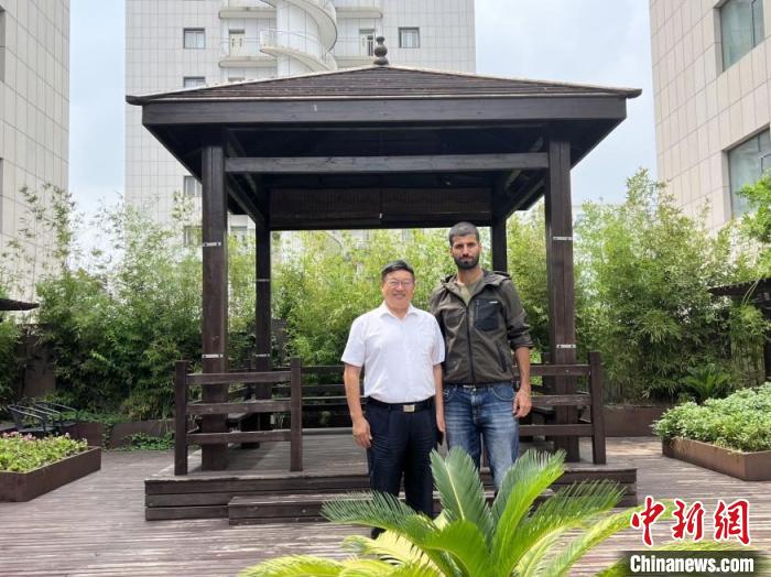 8月2日,在世界針灸學(xué)會(huì)聯(lián)合會(huì)(簡稱世界針聯(lián))北京總部,海德·阿拉維(右)向世界針聯(lián)主席劉保延介紹工作進(jìn)展?!?天津大學(xué)供圖)