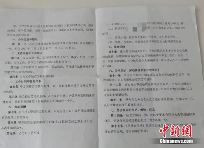 2017年,李月與醫(yī)院簽訂的勞動(dòng)合同,期限為一年。 受訪者供圖