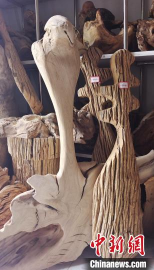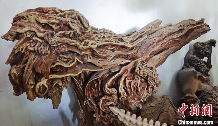中新網(wǎng)新疆阿拉爾9月2日電(史玉江)一根腐朽的樹根,或許在別人眼里一文不值,可是在戴新看來,朽木可雕琢,那些腐朽的樹根不僅能做成工藝品,還能增收致富?!霸诎⒗瓲栠@片土地上,各種樹根和朽木段,不管是沙漠中的,還是河道里的,只要我看上,都盡可能搬回來?!毙陆a(chǎn)建設兵團第一師阿拉爾市“非遺”根雕傳承人戴新說,通過自己的雙手制作的根雕作品,讓他的生活樂趣無限。