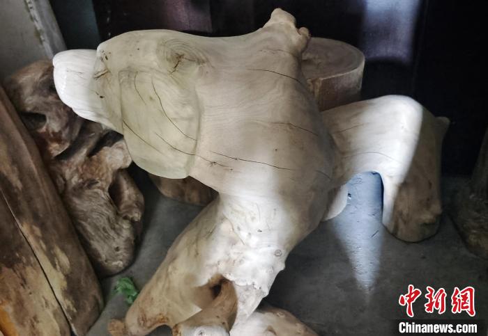 在位于新疆阿拉爾市的戴新根雕加工坊的大院內,擺放著一堆接一堆的各類待加工“材料”,從長二、三米的朽木、樹根,到僅有幾十厘米長的各種樹枝,至少能裝滿幾輛貨車。中新網(wǎng)記者注意到,偌大的廠房式加工“車間”內,各類正在加工的半成品約有幾十件。在左側相鄰的“車間”內,存放著20世紀70年代前后的字畫、木箱、電影放映機、音樂播放機……