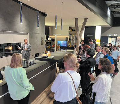 在2022年柏林國際消費電子展期間,參觀者在卡薩帝展臺前了解智能廚房設備。