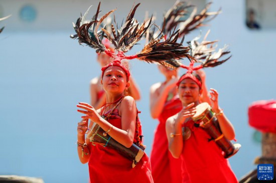 9月3日,中國(guó)海軍“和平方舟”號(hào)醫(yī)院船抵達(dá)東帝汶帝力港,當(dāng)?shù)孛癖姳硌萏厣栉铓g迎。新華社發(fā)(徐巍 攝)