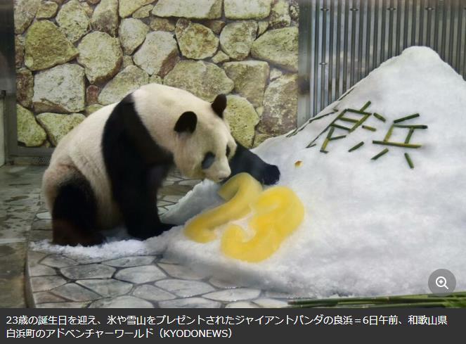 中新網(wǎng)北京9月6日電 據(jù)“日本頭條”網(wǎng)報道,9月6日,被稱為“熊貓媽媽”的大熊貓“良浜”在位于和歌山縣白濱町的休閑設(shè)施“冒險大世界”慶祝了自己的23歲生日。