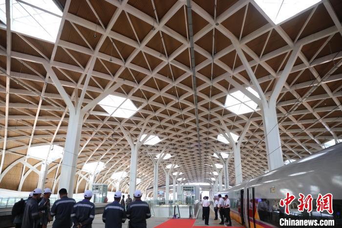 該站也是印尼首都第一站,站房建筑面積2.6萬平方米,可滿足最高2500人同時(shí)候車,高峰每小時(shí)發(fā)送量為5200人。車站屋面采用金屬面板,菱形造型,鋼結(jié)構(gòu)網(wǎng)架,出挑深遠(yuǎn)。室內(nèi)設(shè)計(jì)采用印尼巴迪克傳統(tǒng)蠟染、中國紅等文化元素,中印尼文化巧妙融合、交相呼應(yīng)。