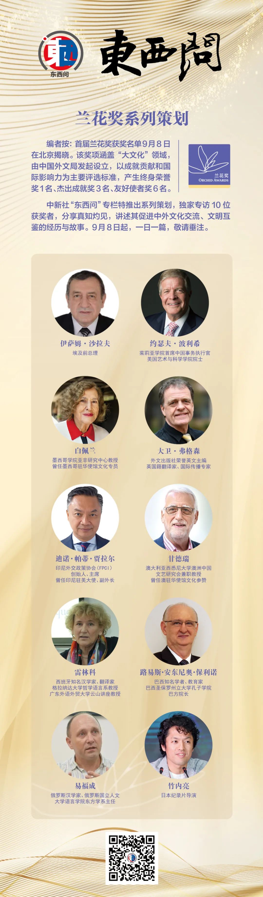 中新社“東西問”專欄特推出系列策劃,獨(dú)家專訪10位獲獎(jiǎng)?wù)?,分享真知灼見,講述其促進(jìn)中外文化交流、文明互鑒的經(jīng)歷與故事。9月8日起,一日一篇,敬請(qǐng)垂注。