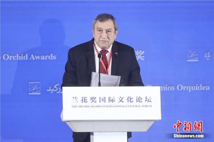 2023年9月8日,蘭花獎(jiǎng)國際文化論壇在北京舉行,伊薩姆·沙拉夫作主題演講。易海菲 攝