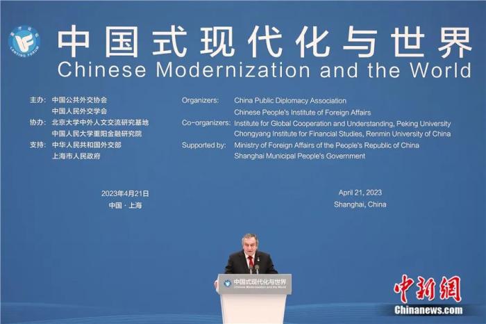 2023年4月21日,“中國式現(xiàn)代化與世界”藍(lán)廳論壇在上?!笆澜鐣?huì)客廳”舉辦,沙拉夫出席論壇開幕式并致辭。殷立勤 攝