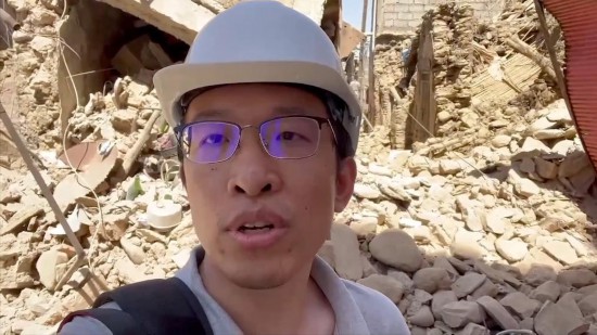 新華社記者霍晶奔赴震中附近的艾米茲米茲村,進行現場報道。