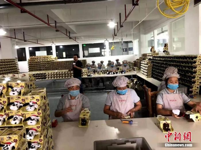 圖為工人們在工廠制作毛絨玩具。受訪者供圖