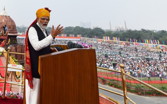 8月15日,印度總理莫迪在德里出席獨(dú)立日慶?;顒訒r(shí)發(fā)表講話。新華社發(fā)