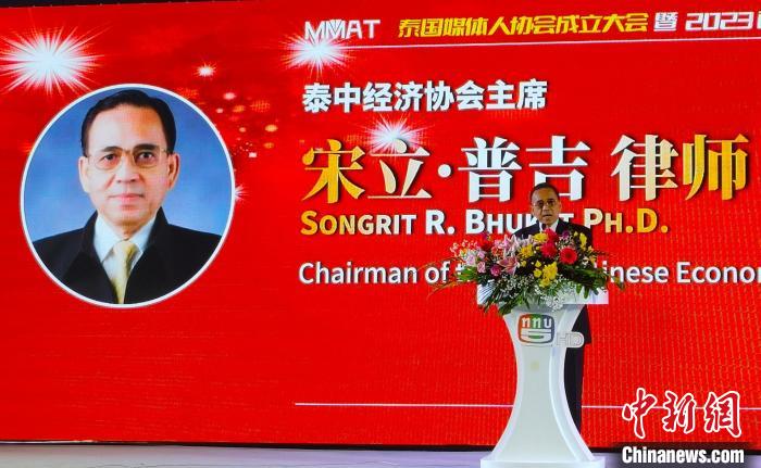 9月9日下午,泰中經(jīng)濟(jì)協(xié)會(huì)主席宋立·普吉在泰國媒體人協(xié)會(huì)成立大會(huì)上致辭。 李映民 攝