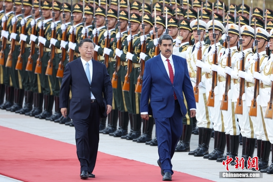 9月13日下午,中國(guó)國(guó)家主席習(xí)近平在北京人民大會(huì)堂同來華進(jìn)行國(guó)事訪問的委內(nèi)瑞拉總統(tǒng)馬杜羅舉行會(huì)談。會(huì)談前,習(xí)近平在人民大會(huì)堂東門外廣場(chǎng)為馬杜羅舉行歡迎儀式。中新社記者 盛佳鵬 攝