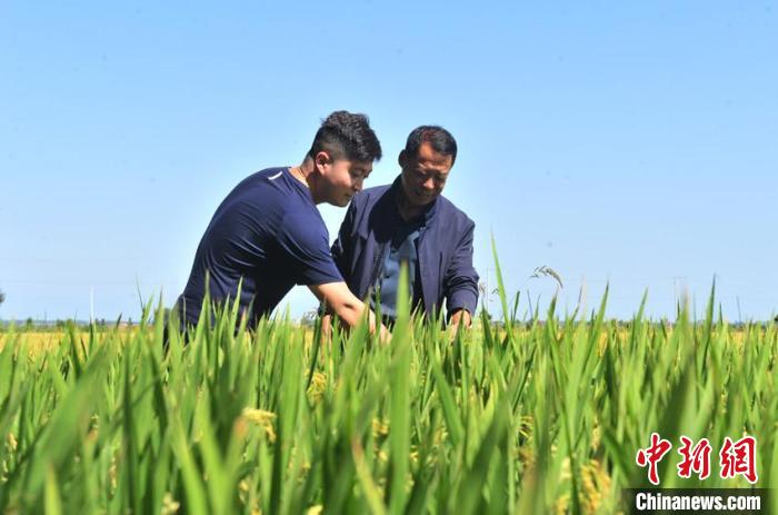 吉林萬昌農(nóng)民楊萬芳從稻浪中掐下一節(jié)稻穗,捏了捏穗根上的稻粒,遞給“90后”臺胞林駿???,“這稻子長得多好,根兒上的粒全是實的。”
