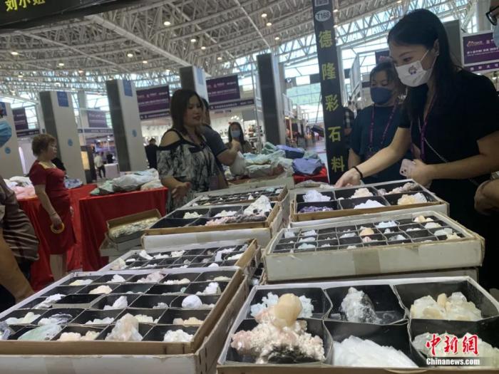 觀眾在中國(湖南)國際礦物寶石博覽會上“淘寶”。魯毅 攝