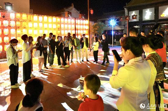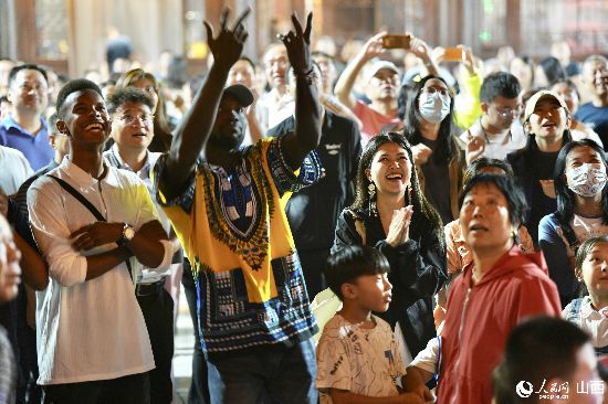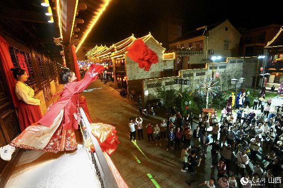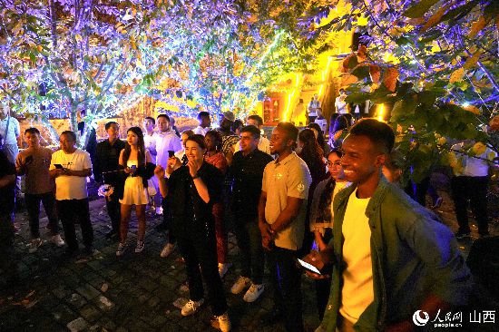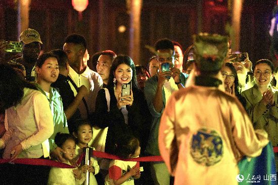 眼花繚亂的民俗表演,沉浸式的古城巡游,絢爛的城樓燈光秀,陶醉的狂歡……9月15日夜晚,在即將結(jié)束山西之行的前夜,2023“漢字緣”國際故事大會決賽的選手們夜游山西省晉城市陽城縣郭峪古城,于燈火闌珊處感受古城中的人間煙火。(人民網(wǎng) 盧鵬宇攝)