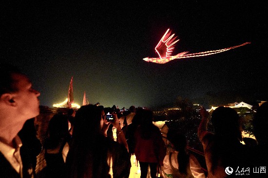 圖為郭峪古城燈光秀表演。人民網(wǎng) 盧鵬宇攝